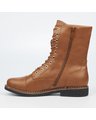 <ul> <li>Round toe</li> <li>Side zip</li> <li>Lace up</li> <li>Slight heel</li> </ul>