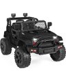 FOR THE CHILD AT HEART (3 YEARS AND UP): Small but mighty, this ride-on is perfect for little racers who want to hit the road like the big kids! 12V Kids Ride On Jeep (Black) - <b>Parent Remote Control Included</b><ul> <li>STRONG 12V LIFELIKE DESIGN: Customizable seatbelt, bright LED headlights, lockable doors, and rugged windshield give off-road vibes, with a 12V motor and traction tires for various terrains.</li> <li>DRIVE MANUALLY OR PARENTALLY: Let your child take the wheel or use the remote control to guide them safely; the remote has forward and reverse controls.</li> <li>SAFE & STURDY: Equipped with plastic wheels that never go flat, a spring suspension system, and a safe max speed of 5km/h for smooth outdoor adventures.</li> <li>BLAST YOUR TUNES: Built-in AUX port lets kids plug in their devices and jam out while driving;</li> </ul>