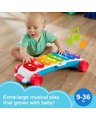 The classic musical instrument pull toy reaches exciting new heights with the Giant Light-Up Xylophone toy from Fisher-Price! This extra-large interactive toy xylophone has 8 multi-color light-up buttons that activate 60+ songs, sounds and phrases as your baby “composes,” plus a sturdy handle that folds under, so little musicians can sit and play or stand and pull it along. Smart Stages technology lets you switch up the play as your baby grows with 3 levels of learning songs and phrases that teach the alphabet, numbers, shapes and more.<ul> <li>The classic xylophone pull toy becomes extra-large with fun lights, music, and educational songs</li> <li>2 ways to play as baby grows from sitting up to walking and pulling along</li> <li>3 Smart Stages learning levels teach the alphabet, numbers and counting, shapes, colors and Spanish words</li> <li>8 colorful light-up buttons activate 60+ songs, sounds, and phrases</li> <li>Pull handle folds under for storage. For babies and toddlers ages 9-36 months</li> </ul>
