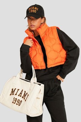 Orange Onion Quilted Cropped Gilet With Drawstring Detail (Orange)