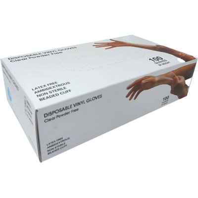 Disposable Vinyl Gloves - Clear Powder Free - 100 Gloves - M